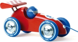 Toto roztomilé ťahacie závodné auto prináša deťom radosť z pohybu a zároveň podporuje ich motorický rozvoj. Robustná drevená konštrukcia, hladké tvary a bezpečné materiály sa snúbia s atraktívnym vzhľadom závodného vozidla s krídlom a jazdcom.