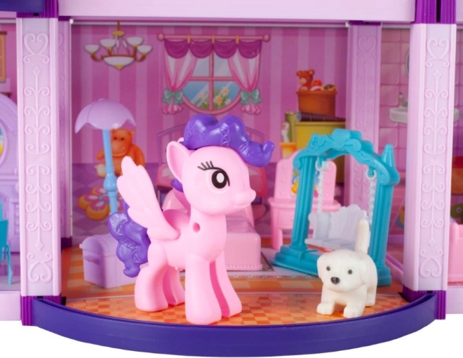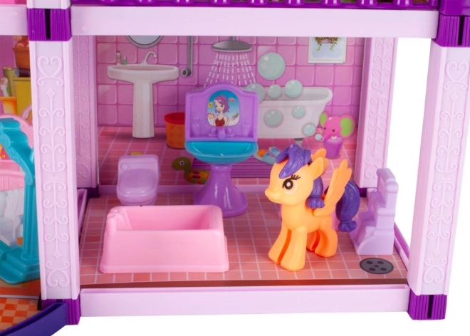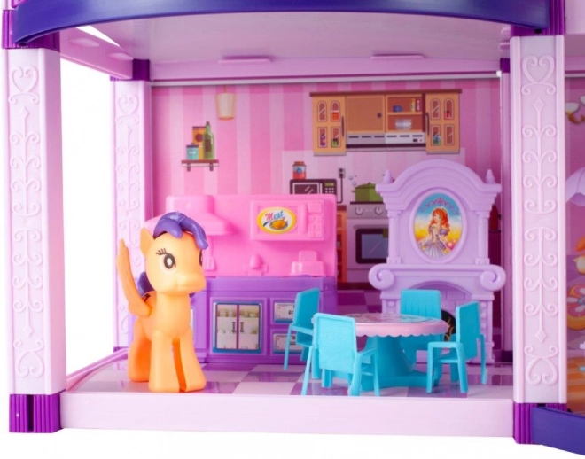 Unikátny domček pre bábiky vyrobený z plastu, ideálny na mnoho hodín zábavy pre každé dievča a jej priateľov. Dom je ideálny pre poníky a psíka, ktorí sú súčasťou sady, alebo pre bábiky. Každý sa v tejto rezidencii bude cítiť ako v paláci. Veľký dom je aj väčší kus nábytku, takže zábava je jednoduchšia a realistickejšia. Interiéry dokonale odrážajú skutočný domov.