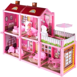 Kúzelný ružový domček pre bábiky s výškou 44 cm poteší každé dieťa bohatou výbavou a detailným spracovaním. Súčasťou je bábika 10 cm s pohyblivými končatinami, nábytok do spálne aj obývačky a balkón so slnečníkom. Domček je z kvalitného plastu a ponúka jednoduchú montáž aj množstvo možností na kreatívnu hru.