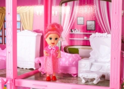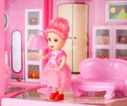 Ružový domček pre bábiky s bábikou a nábytkom (44 cm)