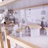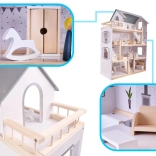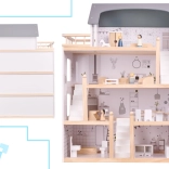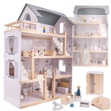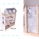 Dom má až štyri podlažia a ponúka veľa priestoru na hranie! Drevená terasa na hornom poschodí dodáva celému domu čaro. Medzi mnohými rôznymi miestnosťami sa nachádza kúpeľňa, pracovňa, obývacia izba, jedáleň s kuchynským kútom a spálňa. Každá z nich je plne vybavená a pripravená privítať novú rodinu bábik. Vďaka veľkým rozmerom sa dovnútra zmestia nielen tie najmenšie bábiky, takže sa nemusíte báť, že by sa obľúbený kamarát vášho dieťaťa nezúčastnil zábavy!