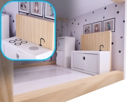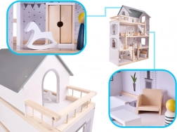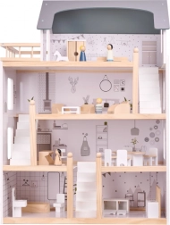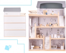Dom má až štyri podlažia a ponúka veľa priestoru na hranie! Drevená terasa na hornom poschodí dodáva celému domu čaro. Medzi mnohými rôznymi miestnosťami sa nachádza kúpeľňa, pracovňa, obývacia izba, jedáleň s kuchynským kútom a spálňa. Každá z nich je plne vybavená a pripravená privítať novú rodinu bábik. Vďaka veľkým rozmerom sa dovnútra zmestia nielen tie najmenšie bábiky, takže sa nemusíte báť, že by sa obľúbený kamarát vášho dieťaťa nezúčastnil zábavy!