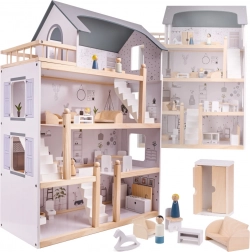 Svetlý drevený domček pre bábiky s nábytkom - 80 cm