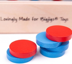 Masívne drevené prevedenie je príjemné na dotyk a odolné voči každodennému používaniu. Povrch žetónov je ošetrený netoxickými farbami a lakmi a výrobok spĺňa aktuálne európske bezpečnostné normy, takže je ideálny do detských izieb aj herných kútikov.