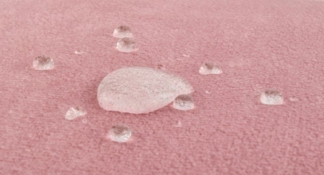Zamatovo hebký materiál CLEANABOO okamžite nevsakuje tekutiny – rozliate nápoje sa držia v kvapkách a ľahko sa zotrú.