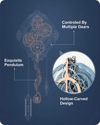Užite si upokojujúce tikanie a plynulý pohyb kyvadla. Otvorený dizajn s prevodmi zvýrazňuje mechanickú krásu hodín a podporuje vintage štýl interiéru.