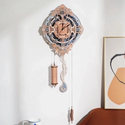 Objavte dvojnásobnú radosť zo skladania a dekorovania s týmito 3D drevenými mechanickými nástennými hodinami. Zostavíte si detailne zdobený ciferník s viditeľným mechanizmom a užijete si upokojujúce tikanie aj pohyb kyvadla. Vďaka batériovému strojčeku hodiny presne ukazujú čas, zatiaľ čo funkčný kyvadlový mechanizmus vytvára atmosféru. Farebná kombinácia prírodného dreva s modrými a oranžovými akcentmi z nich robí neprehliadnuteľnú ozdobu interiéru.