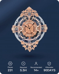 Tento DIY model prepája relaxačný zážitok zo skladania a praktickú funkciu. Po zostavení sa nástenné hodiny stanú elegantnou dominantou miestnosti – s rímskymi číslicami, ozdobnými ornamentmi a viditeľnými prevodmi, ktoré podčiarkujú ich vintage charakter.