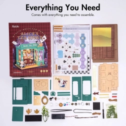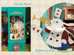 Objavte miniatúrny svet plný fantázie – do zelena ladený obchod s čajom s motívmi bieleho králika, vreckových hodín a šachovnicovej podlahy vytvára atmosféru európskeho popoludňajšieho čaju. Po rozsvietení LED osvetlenia sa model premení na očarujúcu dekoráciu s príjemnou večernou náladou.