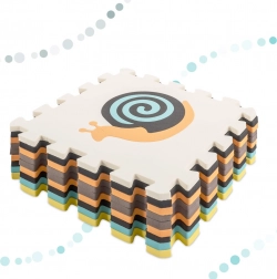 Táto veľká penová podložka sa skladá z 9 dielov s rozmerom 30 × 30 × 1 cm, ktoré do seba ľahko zapadajú. Kontrastné farby a roztomilé motívy zvieratiek zaujmú deti a podnietia ich zrak aj hmat. Vyberateľné stredové prvky fungujú ako jednoduchý sorter – deti sa učia rozpoznávať tvary a priraďovať ich na správne miesto.