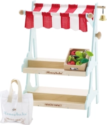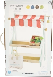 Le Toy Van Predajný stánok Honeybee je obľúbeným produktom značky Le Toy Van, známej svojím oceneným dizajnom a kvalitou. Tento predajný stánok je vybavený červenobielym baldachýnom, zvončekom a drevenými debničkami s ovocím. Inšpiruje deti k rolovým hrám, ktoré rozvíjajú ich sociálne zručnosti a kreativitu.