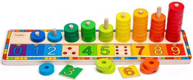Objavte zábavnú cestu k číslam s touto drevenou počítacou doskou od BIGJIGS. Deti si pomocou farebných krúžkov a vyberateľných číslic precvičia počítanie, rozpoznávanie farieb a jemnú motoriku. Stabilné drevené prevedenie, jasné farby a hravé učenie robia z tejto hračky ideálnu voľbu pre predškolákov.