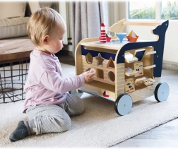 Vydajte sa na prieskum s dreveným chodítkom v tvare veľryby. Toto chodítko nielen pomáha deťom s prvými krokmi, ale tiež poskytuje rôzne interaktívne hračky, ktoré podporujú rozvoj motoriky.