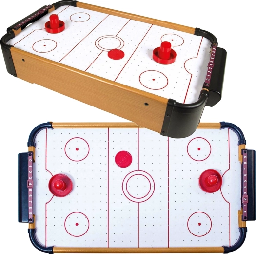 Stôl má pevný drevený rám, integrované bránky, manuálne posuvné počítadlo skóre na oboch stranách a dodáva sa s dvoma ťahadlami a pukom. Hra rozvíja koncentráciu, koordináciu oko–ruka a fair play.
