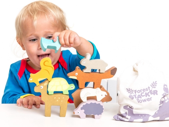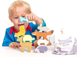 Stavanie zvieratiek do veže podporuje koordináciu ruka–oko, presnosť úchopu aj fantazijnú hru. Ideálna aktivita pre batoľatá.