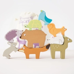 Táto drevená skladačka lesných zvieratiek z kolekcie PETILOU je navrhnutá pre najmenších objaviteľov. Deti môžu stavať líšku, zajaca, ježka, medveďa, myš, korytnačku, veveričku, kolouška a vtáčika do zábavnej veže, precvičovať rovnováhu a objavovať, ako veža rastie – a občas aj s úsmevom spadne. Vďaka príjemnej veľkosti sú figúrky perfektné do detských rúčok.