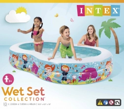 Obsah balenia zahŕňa nafukovací bazénik, opravný set a farebné balenie.
