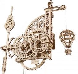 Ugears Aero sú nástenné mechanické hodiny z kvalitnej preglejky, ktoré si sami zostavíte bez lepidla. Fascinujúci pohľad na odhalený hodinový strojček s kyvadlom a závažím sprostredkuje jedinečný zážitok z presného inžinierstva. Čas odčítate z dvojice ciferníkov otáčajúcich sa proti smeru hodinových ručičiek, zatiaľ čo dekoratívny model horúvzdušného balóna pravidelne stúpa a každú celú hodinu sa poklesom pripomenie.
