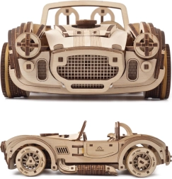 Užívajte si autentický zážitok zo stavby a jazdy. Drevená mechanická stavebnica UGEARS Drift Cobra obsahuje 370 laserom presne vyrezaných dielikov, ktoré do seba zapadajú bez lepidla. Po zložení získate riaditeľný model s funkčným pružinovým motorom, brzdou riadenia a prevodovkou pre voľnobeh aj spiatočku.