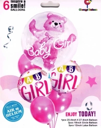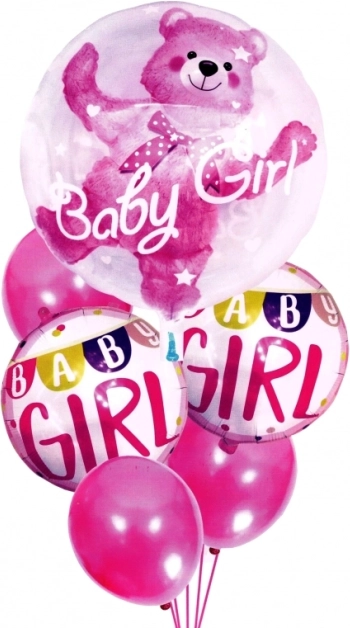 Štýlová sada šiestich ružových balónikov ozdobí každý baby shower, privítanie bábätka aj narodeniny dievčatka. Obsahuje balónik s medvedíkom a nápisom „Baby Girl“, dva balóniky s girlandou „Baby Girl“ a tri jednofarebné ružové balóniky. Možno ich nafúknuť héliom alebo vzduchom a vytvoriť tak okúzľujúcu dekoráciu aj skvelé zázemie pre pamätné fotografie.