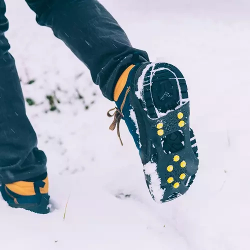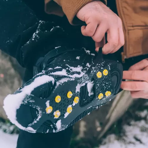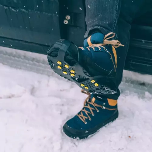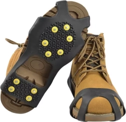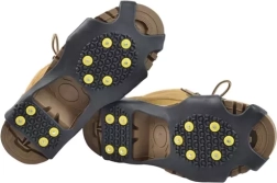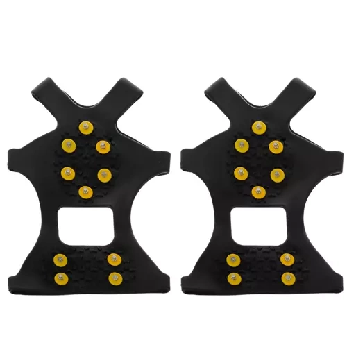 Tieto ľahké a odolné návleky z pružného TPE sa ľahko navliekajú cez špičku a pätu topánky a vďaka kovovým hrotom zaisťujú spoľahlivý záber na ľade, snehu aj rozmočenom blate. Každý návlek má 10 strategicky rozmiestnených hrotov, ktoré zvyšujú stabilitu a znižujú riziko pošmyknutia.