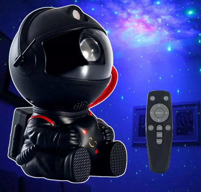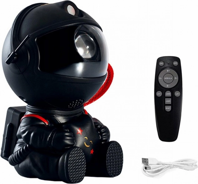 - Nieobyčajný LED projektor hviezd v tvare sediaceho astronauta s hviezdou v ruke.