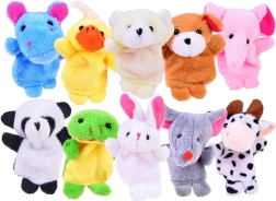 V balení nájdete obľúbené zvieratká: hrocha, myšku, psíka, medvedíka, žabku, sloníka, kravičku, pandu, zajačika a kačenku. Vďaka kompaktnej veľkosti sa maňušky ľahko nasadzujú na prst a hodia sa na cesty, do škôlky aj domov.