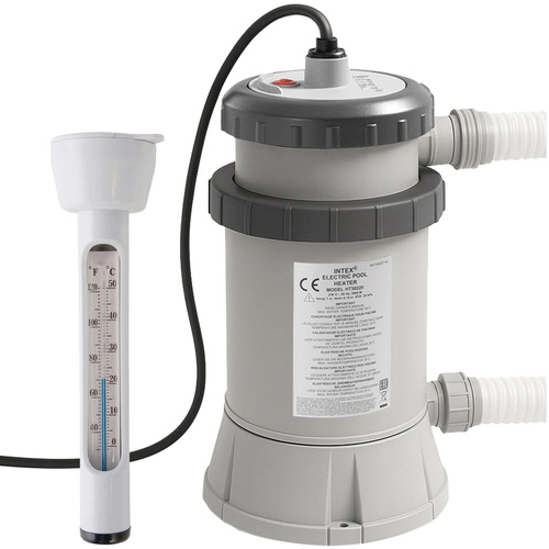 Praktický elektrický ohrievač vody INTEX s výkonom 3 kW pre nadzemné bazény s priemerom 244–457 cm zabezpečí rýchle a pohodlné zvýšenie teploty vody. Je kompatibilný s čerpadlami 2006–3785 l/h, ponúka jednoduchú inštaláciu bez náradia a bezpečnostnú ochranu vďaka RCD vypínaču. Napájanie 230 V, jednoduché ovládanie jedným tlačidlom a spoľahlivé udržiavanie teploty 17–34 °C robia z tohto ohrievača ideálnu voľbu pre rodinné bazény.