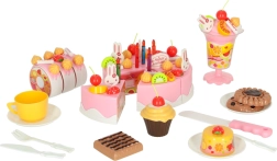 Okrem torty nechýbajú sušienky, roládky, cupcake, pohár na zmrzlinu a náradie – všetko pre realistickú hru na oslavu.