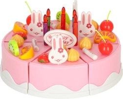 - 6 dielikov torty, 5× sviečka, 14× pusinka, 7× cukrové tyčinky, 4× čerešnička, 4× mandarínka, 3× jahoda, 3× kiwi, 4× zajačik, tabuľka „Happy Birthday“, 3× tanierik, 3× sušienka, 3× kúsok rolády, hrnček, lyžička, vidlička, nožík, lopatka na tortu, pohár na zmrzlinu, samolepky, sada suchých zipsov