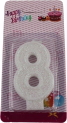 Elegantná narodeninová sviečka v tvare číslice 9 s jemným trblietaním je perfektnou voľbou pre výnimočný okamih sfúknutia priania. Vďaka čistému bielemu prevedeniu a trblietkam sa skvele hodí k rôznym štýlom tort a dekorácií.