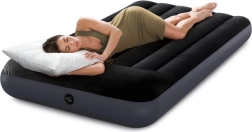 Táto nafukovacia matrac vo veľkosti Standard Twin (99 × 191 × 25 cm) je ideálnym riešením na dočasné spanie doma aj na cestách. Horný zmäkčený semišový povrch je príjemný na dotyk a pomáha udržať prestieradlo na mieste, zatiaľ čo zvýšený podhlavník poskytuje prirodzenú oporu hlavy a krku.
