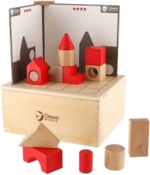 Sada je vytvorená pre deti od 3 rokov a všetky dieliky sú bezpečne uložené v drevenej krabičke o rozmeroch 18,5 x 16 x 9 cm. Deti môžu skúšať zostaviť bloky podľa kariet a zladiť obe strany, čím si precvičujú logiku a zručnosť.