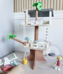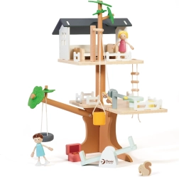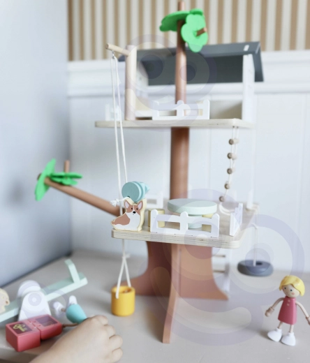 Balenie obsahuje 31 prvkov vrátane 2 detských figúrok, 2 zvieratiek a doplnkov ako hojdačka, hojdačka–pneumatika, balančná hojdačka, posteľ, stôl, stoličky a truhlica s pokladom. Precízne opracované prírodné drevo s jemnými farbami je odolné a príjemné na dotyk.