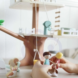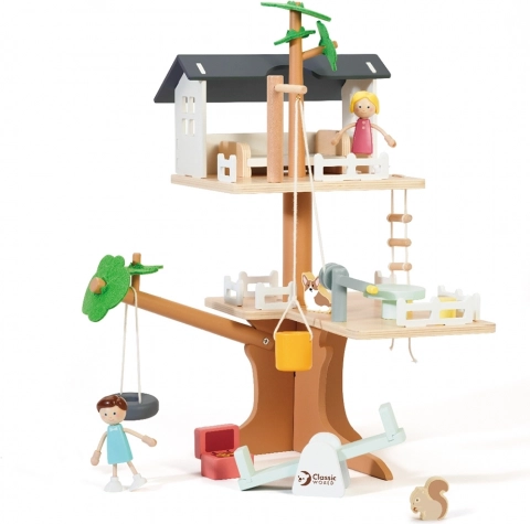 Domček na strome Classic World pozýva deti do sveta fantázie a príbehov. Dvojúrovňová konštrukcia s plôtikmi, rebríkom a malým domčekom ponúka množstvo scenárov – od vyvážania pokladov pomocou pohyblivej kladky s vedrom až po hojdanie na hojdačkách a hranie sa so zvieratkami. Set je ideálny na rozvoj jemnej motoriky, kreativity a sociálnych zručností pri spoločnej hre.