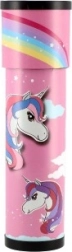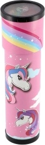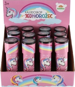 Veselý ružový dizajn s jednorožcom a dúhou podporuje fantáziu a z kaleidoskopu robí obľúbenú hračku pre malých snílkov.