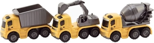 Zábavné plastové stavebné autíčka na zotrvačník potešia každého malého staviteľa. V balení nájdete 3 rôzne druhy vozidiel s veľkosťou cca 10 cm, ktoré sa po natiahnutí rýchlo rozbehnú. Ideálne ako originálny darček pre deti od 3 rokov.