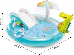 Prineste svojim deťom radosť z letného dňa plného vody a zábavy s týmto nafukovacím detským bazénikom od značky INTEX. Je vybavený šmykľavkou, hracím kruhom a fontánou v tvare krokodíla, čo zaručí nekonečnú zábavu pri vodných hrách.