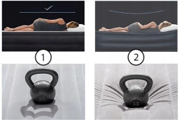 Integrovaná nožná pumpa umožňuje jednoduché nafúknutie bez elektriny. Matrac je zároveň možné dofúknuť aj bežnou pumpou cez ventil.