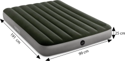 Praktická nafukovacia posteľ INTEX pre jednu osobu ponúka rozmery 191 × 99 × 25 cm, príjemný zamatový povrch a vstavanú nožnú pumpu pre jednoduché nafúknutie kdekoľvek. Vďaka technológii Dura-Beam Fiber je matrac stabilná, odolná a poskytuje zdravú oporu chrbtice. Ideálna domov aj na cesty.