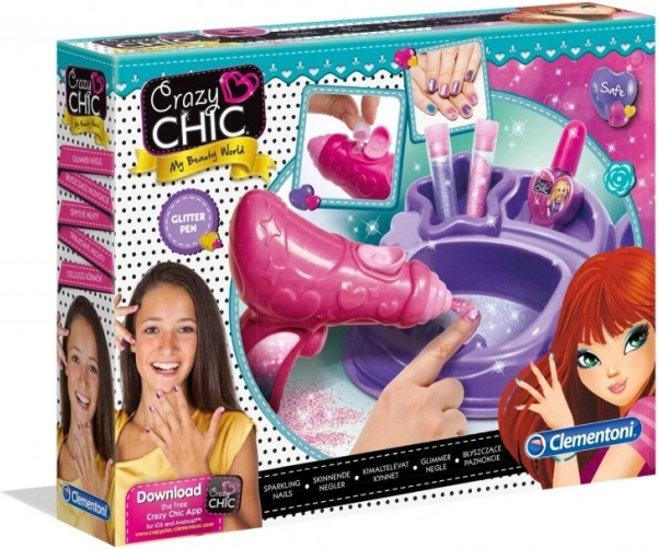 Clementoni crazy chic trblietavé nechty – kreatívna sada na zdobenie nechtov pre deti