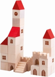 Táto drevená stavebnica obsahuje 100 dielikov v rôznych tvaroch a veľkostiach, ktoré umožňujú deťom vytvoriť vlastné malé mestečko. Vďaka farebnému prevedeniu s červenými strechami a prírodným drevom je táto stavebnica nielen krásna, ale aj plne funkčná pre imaginatívnu hru. Pomáha rozvíjať jemnú motoriku a priestorové vnímanie u detí.