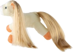 Táto oranžová plyšová kabelka ukrýva vo vnútri rozkošného koníka, ktorého možno kedykoľvek vybrať a zasa vrátiť späť. Dlhá, hebká hriva priamo nabáda k česaniu a zapletaniu vrkôčikov, čo rozvíja jemnú motoriku a kreativitu.