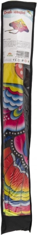 Tento farebný šarkan s motívom motýľa je vyrobený z ľahkého a zároveň odolného nylonu, vďaka čomu výborne lieta a odoláva vetru. Je ideálny na spoločné rodinné chvíle na lúke či v parku. Veľkosť 145 × 80 cm zaručuje dobrú stabilitu a viditeľnosť na oblohe, čo ocenia začiatočníci aj menšie deti.