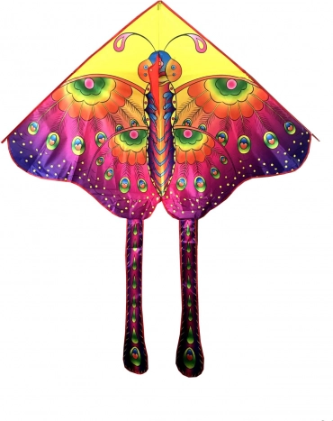 Lietajúci šarkan z nylonu s motívom motýľa, rozmery 145 × 80 cm. Odolný, stabilný a ľahko ovládateľný. Skvelá vonkajšia zábava pre deti od 3 rokov.