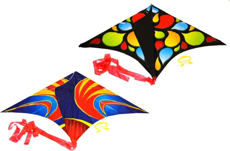 Lietajúci drak 61x114 cm, dostupný v čiernej a modrej farbe, ideálny pre vonkajšiu zábavu.