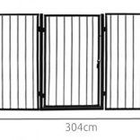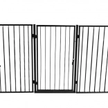 Praktická bezpečnostná bránka ku krbu chráni deti aj domáce zvieratá pred horúcim povrchom a otvoreným ohňom. Vďaka piatim segmentom na pántoch ju ľahko prispôsobíte priestoru, má jednoduchú montáž do steny, poistku proti náhodnému otvoreniu a je kompatibilná s väčšinou krbov. Robustná oceľová konštrukcia v čiernej farbe, celková šírka 304 cm a výška 74,5 cm poskytujú spoľahlivú ochranu v obývacom priestore.