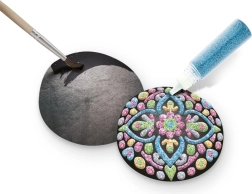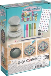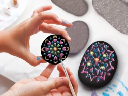 S touto tvorivou sadou ľahko vytvoríte efektné mandalové vzory a žiarivé motívy na hladkých kameňoch. Vďaka kombinácii čierneho podkladu, metalických farieb a samolepiacich kamienkov vyniknú vaše dekorácie výrazným kontrastom a trblietkom. Maľovanie na kamienky je skvelý spôsob, ako si oddýchnuť a zároveň vyrobiť krásne darčeky či doplnky do bytu a na záhradu.
