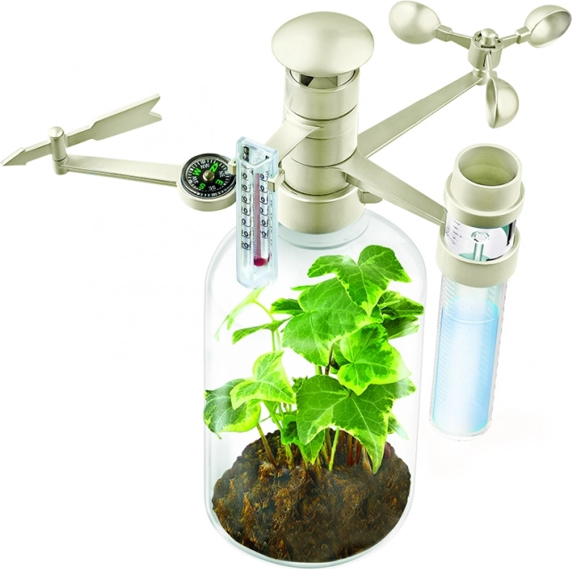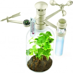 Zábavná a vzdelávacia meteorologická stanica pre deti od 5 rokov. Táto stanica umožňuje deťom sledujte a zaznamenávajte údaje o počasí pomocou mini observatória a pochopiť efekty skleníkového javu prostredníctvom fľaše s teráriom.