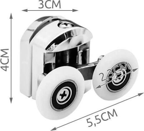 Vhodné sú pre všetky sprchové kúty, ktoré používajú tento typ guličkových ložísk. Valčeky s kolieskami sa vďaka naklápaciemu dizajnu prispôsobia tvaru kanála. Sú vhodné pre štvorcové aj polkruhové kabíny.